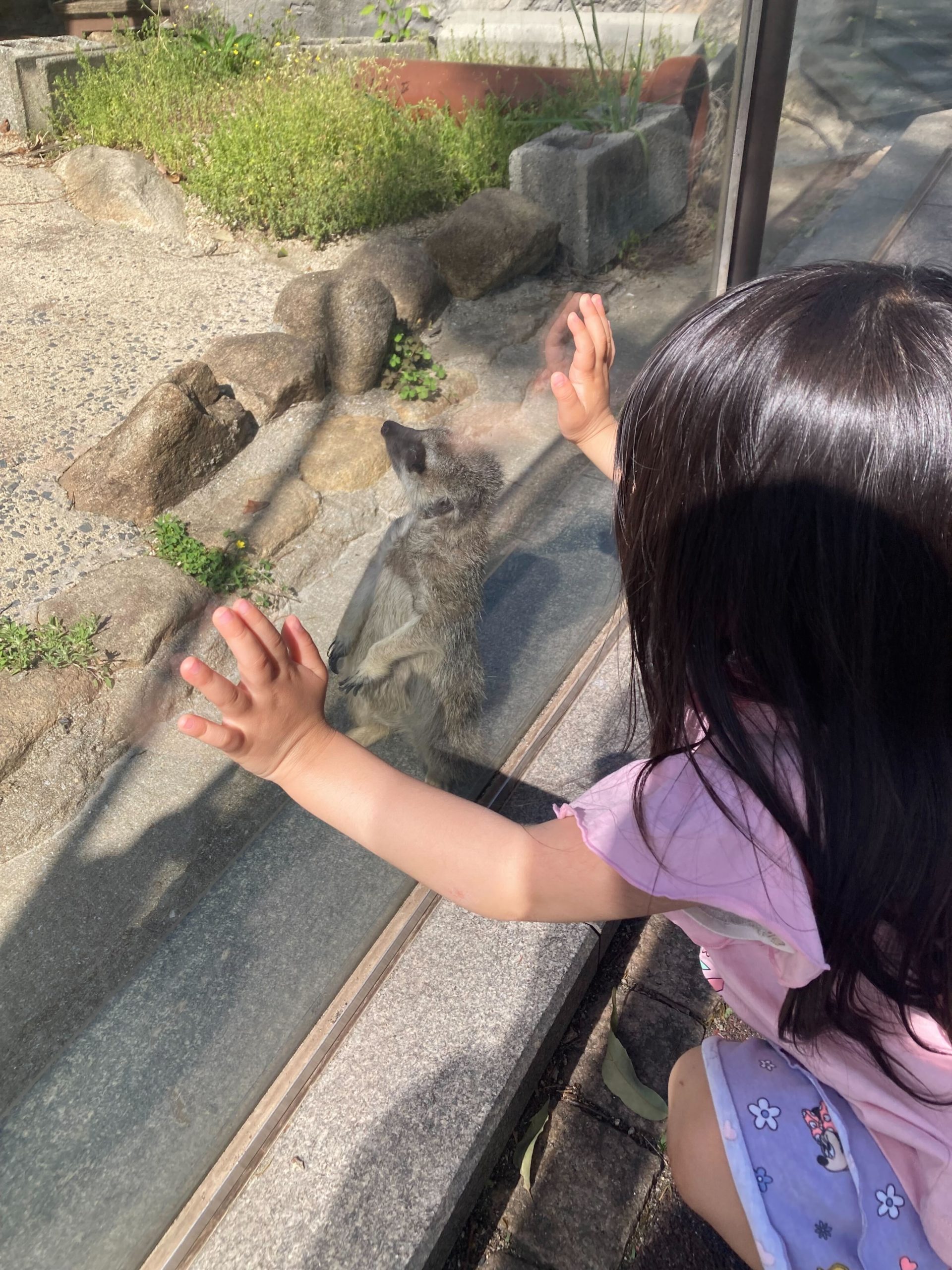 このミーアキャットはかなり高齢で園内に1匹しか残っていないようです。新しい個体を追加しようにも、その子たちが若すぎるとストレスがかかってこの子が長生きできないんだそうです。少し寂しいような気もしますが、飼育員さんたちとのんびり暮らす方がこの子にとっては良いのかもしれません。