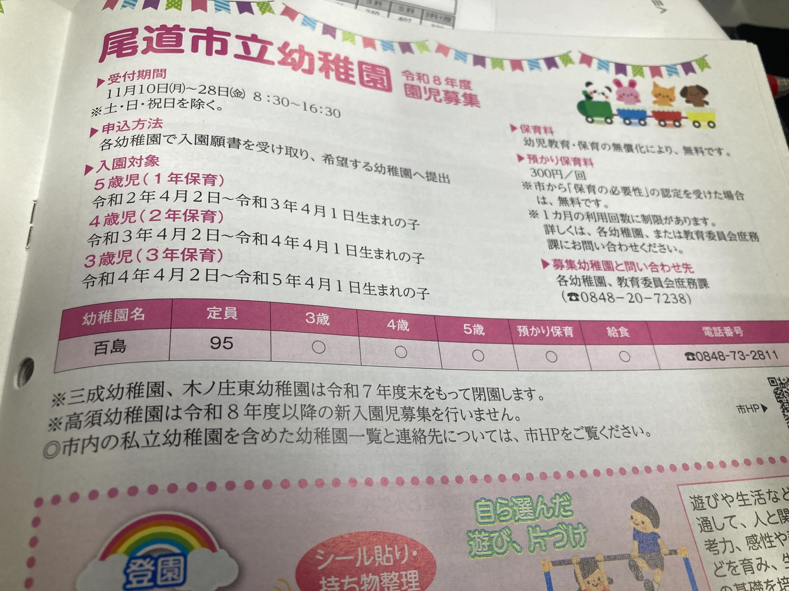 尾道市立幼稚園、文字通り尾道市が運営している公立の幼稚園ですが、この広報にいくつの市立幼稚園が載っていたか、みなさんご存じでしょうか?
